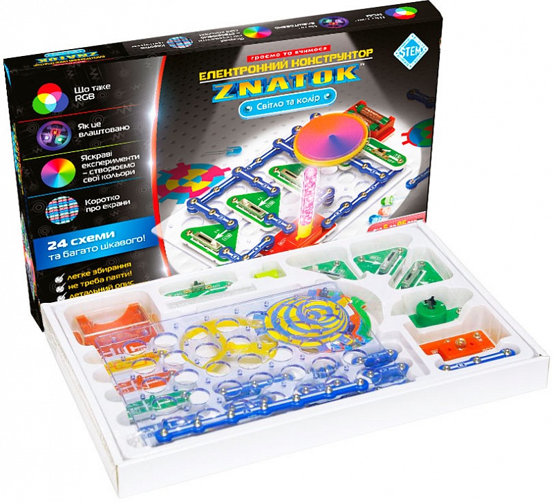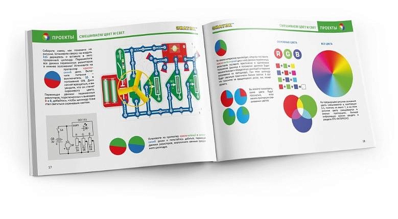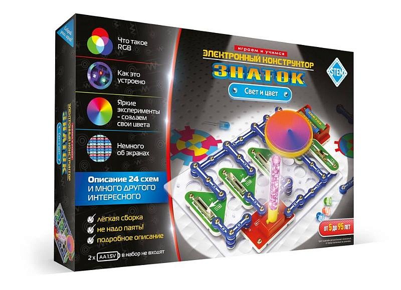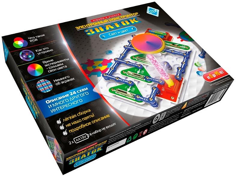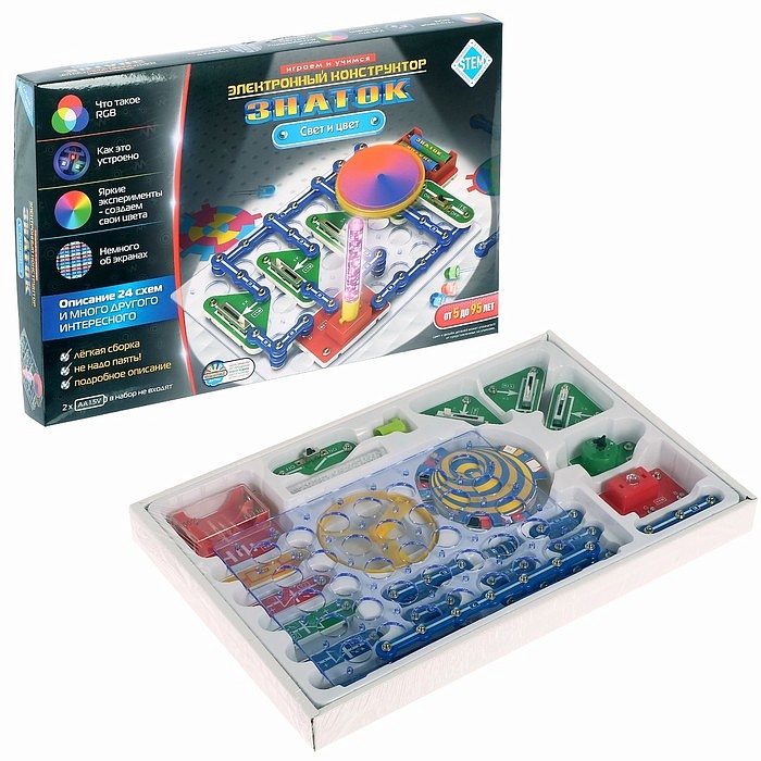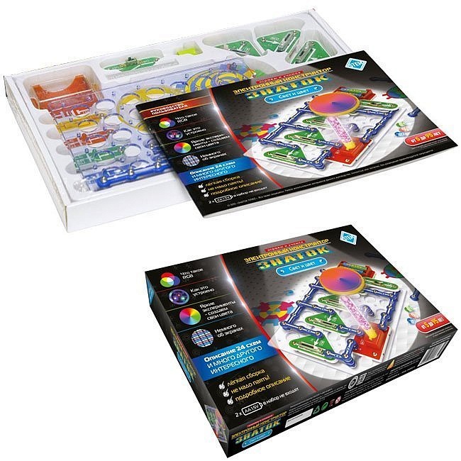 Этот интересный конструктор — увлекательный набор для изучения физики и, в частности, свойств цвета. Ребенок совершит ряд интересных опытов и узнает, как смешивать базовые цвета для получения разных оттенков. Благодаря этому набору, ребенок сможет лучше изучить моделирование и конструирование и получит функциональное изделие.