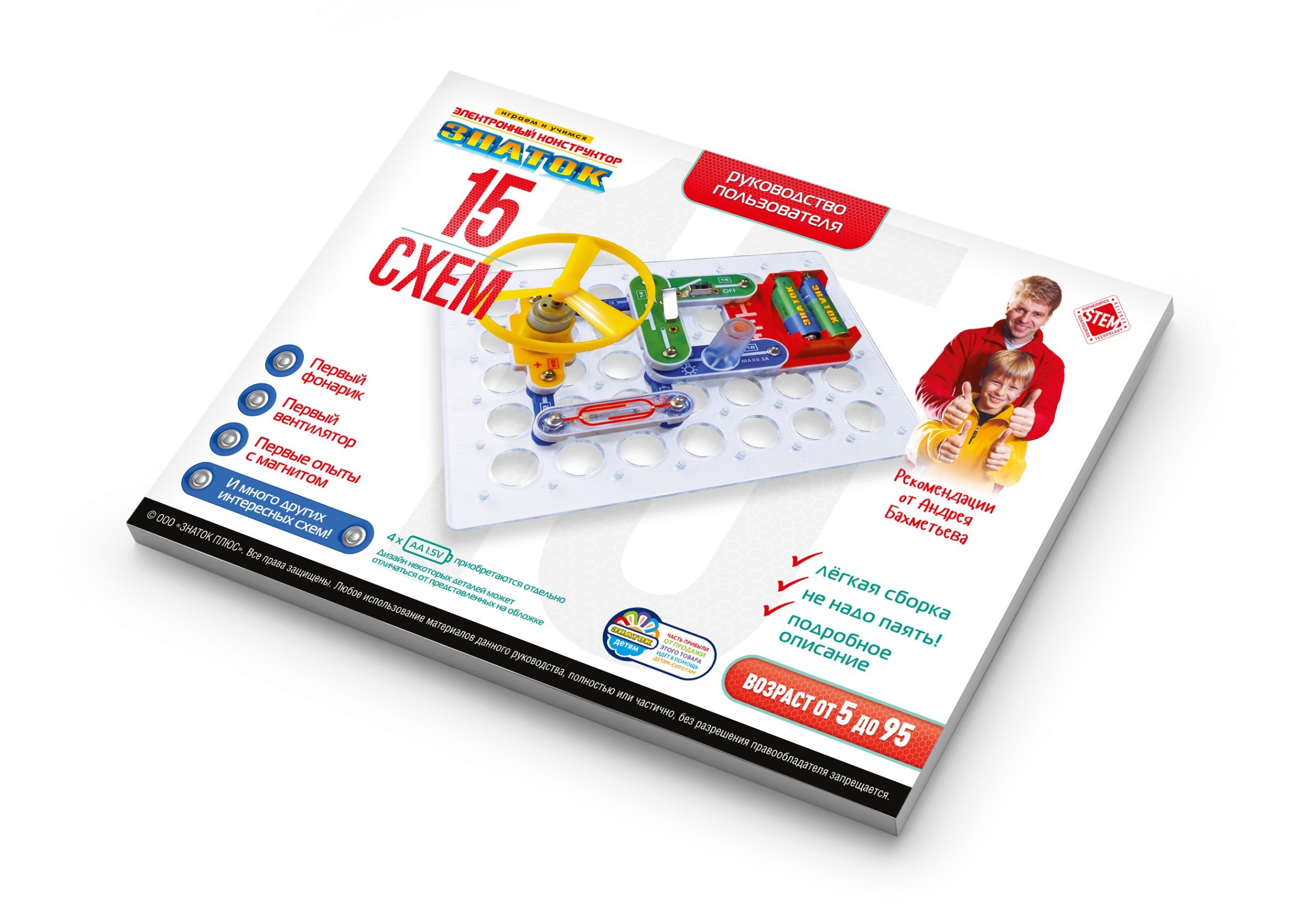 Для того чтобы ребёнок научился не просто собирать электрические схемы, а задумывался над собранным проектом, мы поместили комментарии с пояснениями и задания на быстрое усвоение важных знаний по физике. Мы рекомендуем данный набор для детей 6-12 лет, но фактически конструктор рассчитан практически на любой возраст, мы часто видим, как родители с удовольствием играют вместе с детьми. Простота соединений и ясность описания позволяет собирать сложные схемы даже ребенку пяти лет. 100% положительным результатом можно удивить родителей, друзей, учителей.