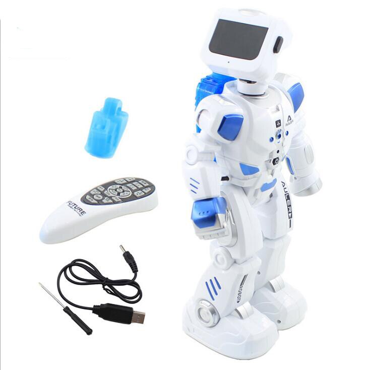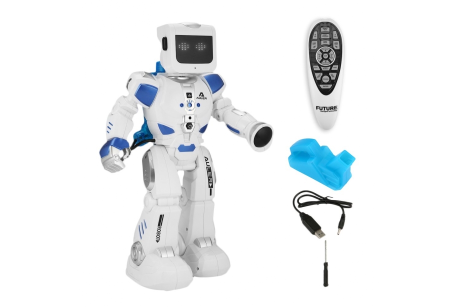 Современный робот на радиоуправлении K3 со звуковыми и световыми эффектами удивит Вашего юного любителя инновационных технологий функциональными возможностями. После наполнения заднего контейнера водой, зафиксированного на спине у космического друга происходит включение игрушки. Робот оснащен множеством интересных программ, позволяющим ему не только двигаться вперед-назад, поворачиваться, вертеть головой, петь и говорить, но и даже танцевать под музыку. Производительный аккумулятор Li-Ion с емкостью 600mAh обеспечит продолжительную, веселую игру. Интерактивный робот K3 New Auler – это уникальная игрушка, предназначенная для деток старше пяти лет, с которой ребенок будет развивать логическое мышление, координацию движений и фантазию. Игровой набор дополнен коробкой размером 42 х 15 х 39 см, а также пультом радиоуправления с радиусом действия до 10 метров, с которым легко справится даже новичок. Представленная модель поразит Вашего непоседу удивительной детализацией, маневренностью и футуристичным дизайном, добавляющим игре реалистичности.
