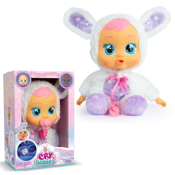 Goodnight Coney представляет лимитированную серию кукол Cry Babies и она поможет ребенку заснуть самым волшебным образом! У Coney мягкое тело, она одета в очаровательную уютную пижамку. Если забрать у Coney пустышку, то на ее лице появятся слезы. Когда пустышка возвращена малышке, ее лицо озаряется умиротворяющим светом. Оба данных эффекта достигаются благодаря светодиодной подсветке, которую можно увидеть в темноте.