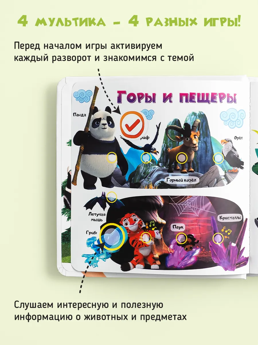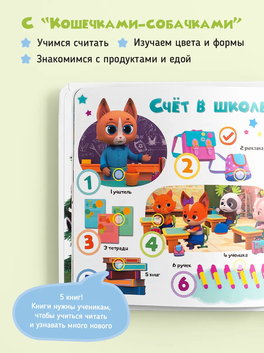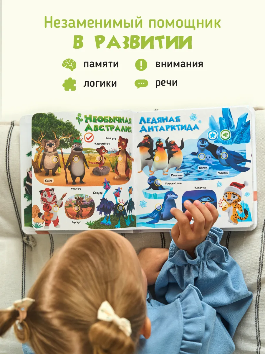 Вместе с известными героями мультфильмов, такими как «Лео и Тиг», «Кошечки-Собачки», «Сказочный патруль» и «Аркадий Паровозов», ребенок познакомится с разнообразными животными из различных природных зон, узнает о их формах и цветах. В процессе обучения малыш научится считать до 10, а также познакомится с основными эмоциями и противоположностями. Кроме того, в книге рассматриваются продукты, которые можно приобрести в магазине, и блюда, которые из них готовят, а также происхождение продуктов и их состав. Особое внимание уделяется вопросам безопасности как дома, так и на улице. Книга сама задает вопросы и проверяет правильность ответов, что способствует активному участию ребенка в обучении и закреплению полученных знаний.
