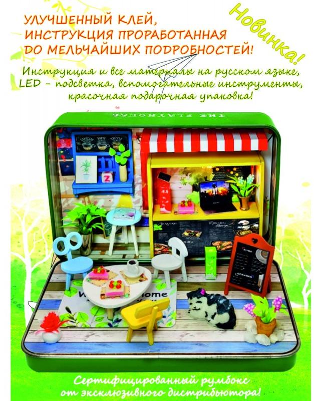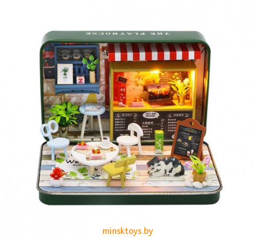 Интерьерный конструктор Румбокс - Летнее кафе в шкатулке, 66 эл, подсветка, HOBBY DAY S933