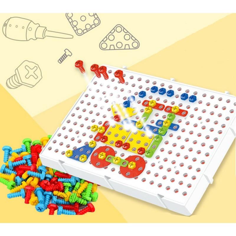 Великолепная новинка от Magic Plate ! Яркая мозаика с множеством разноцветных болтов , отверткой и шуруповертом.