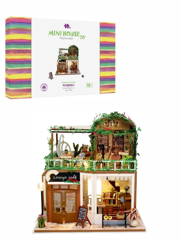 Румбокс Интерьерный конструктор Hobby Day DIY MiniHouse, от официального дистрибьютора, полностью русифицированный. Для успешной сборки необходима русскоязычная инструкция. Проверяйте наличие логотипа HOBBY DAY на коробках. Остерегайтесь подделок! Румбокс - это готовый набор для творчества, внутри которого Вы найдете все необходимое, чтобы воссоздать собственными руками кукольный домик высокой детализации. Все детали выполнены из безопасных материалов и необыкновенно реалистичны. Diy Mini House станет действительно прекрасным подарком. Это интересное времяпрепровождение для детей от 10 до 14 лет. Собранный румбокс может стать как необычным элементом декора с подсветкой, так и домиком для кукол размером 5-7 см. Материал конструктора: дерево, текстиль, пластик, металл. Комплектация: детали изделия, русская инструкция, клей, светодиоды (комплект для освещения с выключателем). Обращаем внимание, что пылезащитный купол не входит в состав данного набора.