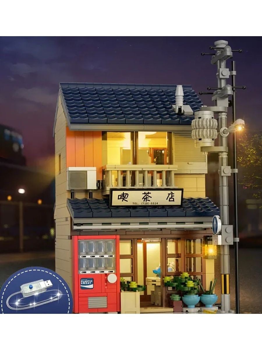1200 деталей для постройки японского чайного магазина, подсветка |