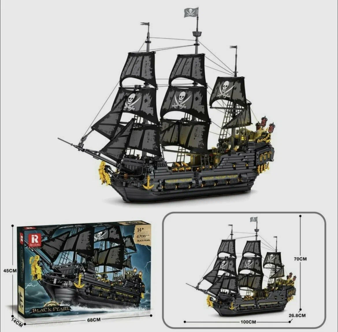 Погрузитесь в захватывающий мир пиратских приключений с конструктором Reobrix "Чёрная жемчужина"! Этот уникальный набор позволяет детально воспроизвести культовый пиратский корабль из серии фильмов "Пираты Карибского моря", созданных компанией Disney. В набор входят 4708 деталей, благодаря которым ваш ребенок сможет собрать прекрасную модель корабля с очаровательным и зловещим дизайном, черными парусами и изящным корпусом.