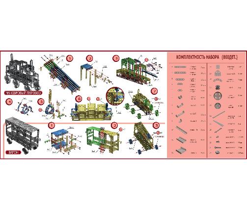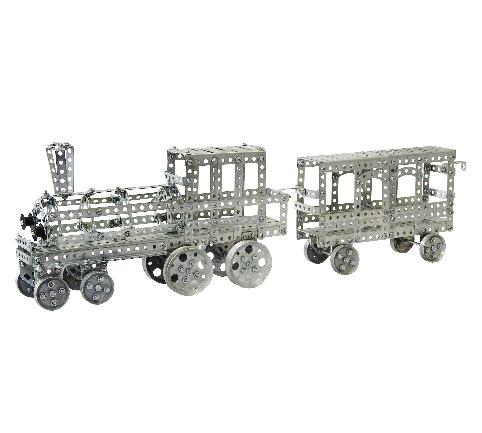 Металлический конструктор состоит из 860 мелких деталей, которые в собранном виде превращаются в паровоз с вагоном Конструктор из металла - это настоящая классика. Он отлично развивает конструкторское, инженерное мышление. Детали гораздо надежнее, по сравнению с пластиковыми конструкторами. Можно комбинировать детали этого набора с аналогичными металлическими конструкторами.