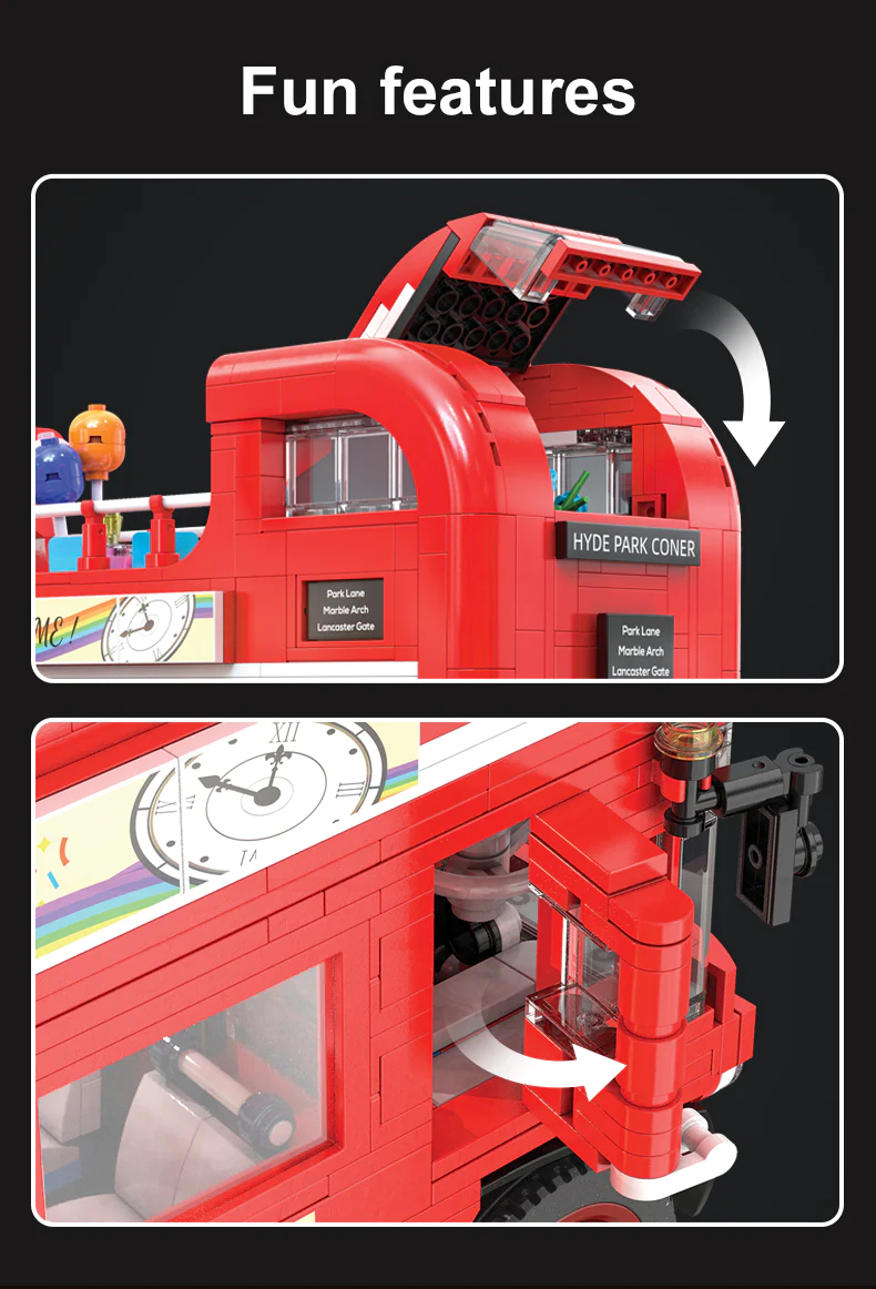 Конструктор CADA Лондонский винтажный туристический автобус" – уникальный набор для создания детализированной модели легендарного автобуса из 1770 деталей. Модель обладает модульной структурой, открывающейся дверью и внутренней подсветкой, обеспечивающей потрясающую детализацию внутреннего интерьера.