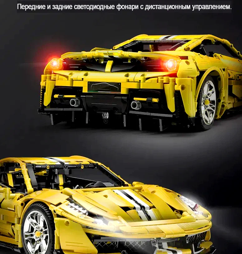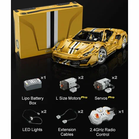 Конструктор CaDA представляет собой набор для сборки масштабной модели спорткара в пропорциях 1:8, состоящий из 3187 деталей стандарта Technic. Желтый итальянский суперкар сочетает в себе высокую детализацию и функциональность радиоуправляемой модели.