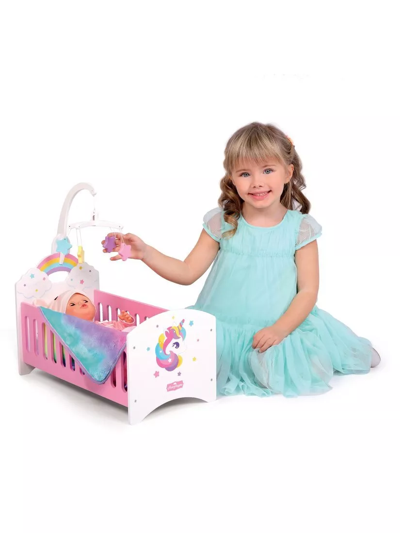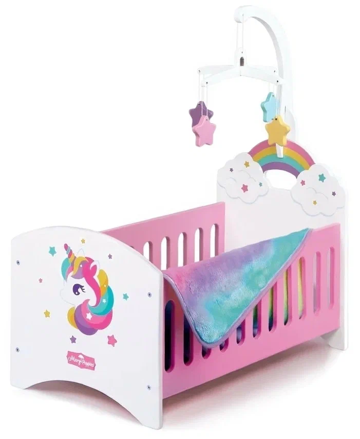 Кроватка для куклы с каруселькой Единорог розовый, Mary Poppins 67421