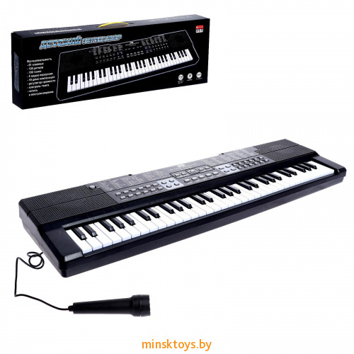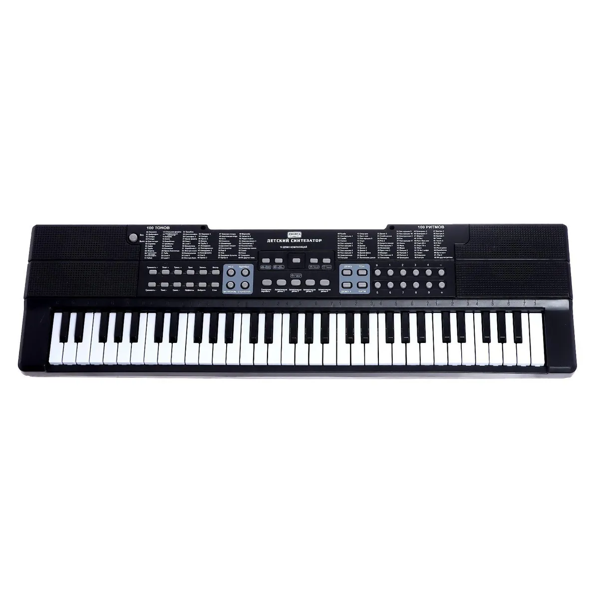 Игрушечный детский синтезатор привьёт интерес к музыке. Занятия с инструментом способствуют развитию музыкального, визуального восприятия, мелкой моторики, воображения и памяти. Малыш будет нажимать на клавиши, слушать интересные мелодии и звуки. Вместе с ребёнком изучайте ноты в игровой форме, придумайте сюжет для увлекательных занятий. Дополнительно Работает от сетевого адаптера или от 3 батареек типоразмера AA, в комплект не входят. Функции: 100 ритмов, 100 тонов, 5 видов перкуссии, 5 ударных, 10 демо композиций, звуковые эффекты, контроль темпа, функция записи и воспроизведения.