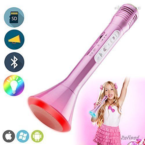 Микрофон с собственным динамиком работает без проводов. Для него не нужно специальных приспособлений: просто включите караоке-видео на смартфоне и наслаждайтесь вечеринкой. Интересный цвет корпуса сделает микрофон хорошим подарком для девочки