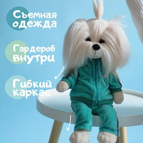 Очаровательная мягконабивная игрушка Lucky Mimi «Фитнес с каркасом» порадует каждую девочку. Изготовлена игрушка из высококачественных, безопасных и гипоаллергенных материалов. Одежда снимается. У данной модели игрушки есть каркас, который позволит придавать собачке разные позы.