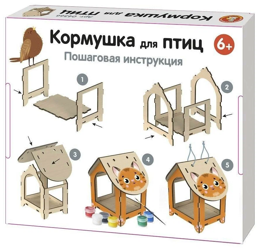 Собрать кормушку сможет каждый – набор отличается простотой и состоит всего из 7-х деталей, при сборке которых не потребуется никаких инструментов. Весь процесс займет не более 10 минут.