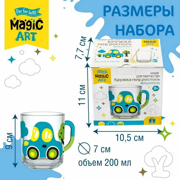 Набор для росписи «Узор» - это увлекательное занятие для детей и взрослых, которое позволит раскрыть творческий потенциал и создать уникальный предмет посуды. Окунитесь в мир волшебства: Станьте художником. Превратите обычную кружку в произведение искусства, используя краски и кисти. Добавьте свою фантазию и создайте неповторимый дизайн. Развивайте мелкую моторику. Роспись кружки тренирует координацию движений, ловкость рук и пространственное мышление. Погрузитесь в антистрес. Творческий процесс помогает расслабиться и снять напряжение. Создайте уникальный подарок. Расписанная вами кружка станет душевным и оригинальным подарком для близких и друзей. Преимущества: Легко и интересно: Процесс росписи не требует специальных навыков и подходит для людей любого возраста. Развивает творческие способности: Позволяет проявить фантазию, чувство цвета и композиции. Безопасные материалы: Все элементы набора нетоксичны и безопасны для детей. Универсальный подарок: Набор станет отличным подарком для детей, взрослых, любителей рисования и креатива.