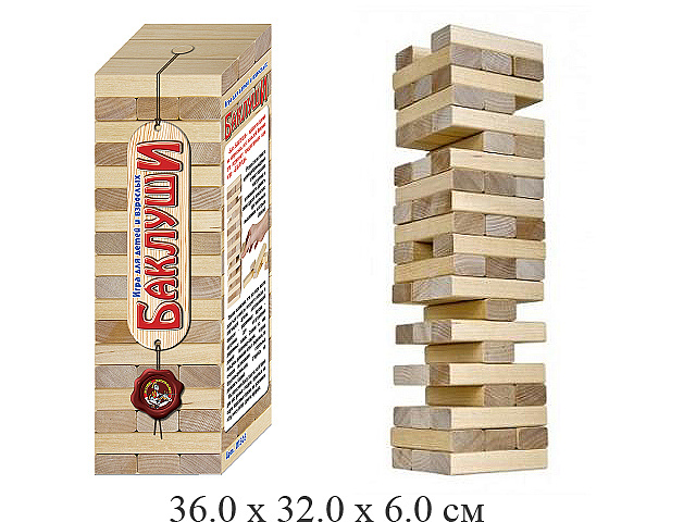 Мы упростили Вашу задачу, изготовив для вас ровные, гладкие, приятные на ощупь березовые бруски, но усложнили игру, внеся более строгие правила. Сложите ровную пирамиду, используя уголок от упаковки. Уложите в каждый ряд три игровых элемента, каждый последующий ряд складывается в направлении поперечном предыдущему. Таких рядов у вас получится 18! Переверните уголок и уберите его. На столе окажется высокая, восемнадцатиэтажная неприступная башня. Теперь играющие могут идти на приступ. Играть может любое количество участников, главное, чтобы каждому из них удалось сделать хотя бы один ход в вашей компании. Каждый игрок выбирает для атаки свой уровень и вытаскивает одной рукой один из брусков! Каждая фишка-брусок, добытая игроком, осторожно укладывается на верхний последний ряд, верхний этаж сооружения.