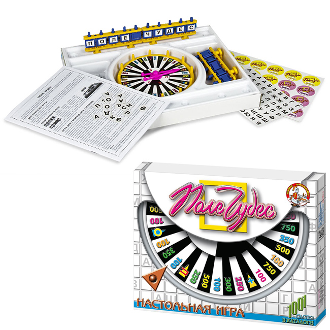 Гордость и радость победителя за свои умственные способности придает ему уверенность в своих силах, повышает самооценку. Наша игра не стареет, обновленные формы позволили сделать игровой барабан легко вращающимся, а окошки для загадываемого слова удобными и очень похожими на телевизионные! Максимальная имитация известной телевизионной игры игровыми элементами, входящими в комплект, создают эффект сопричастности к телевизионной передаче. Безусловно, как и в настоящей экранной версии, важна роль ведущего: от него и от того, сумеете ли вы подготовить привлекательные подарки для победителей, будет зависеть, станет эта игра радостью для участников или нет!