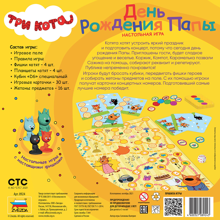 Три кота. День Рождения Папы - настольная игра, Звезда 8924