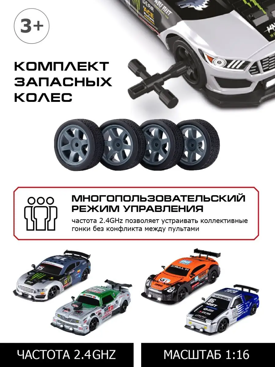 машинка для дрифта, пульт управления, ёмкость для воды, 2 комплекта колёс, ключ, аккумулятор, зарядное стройство |