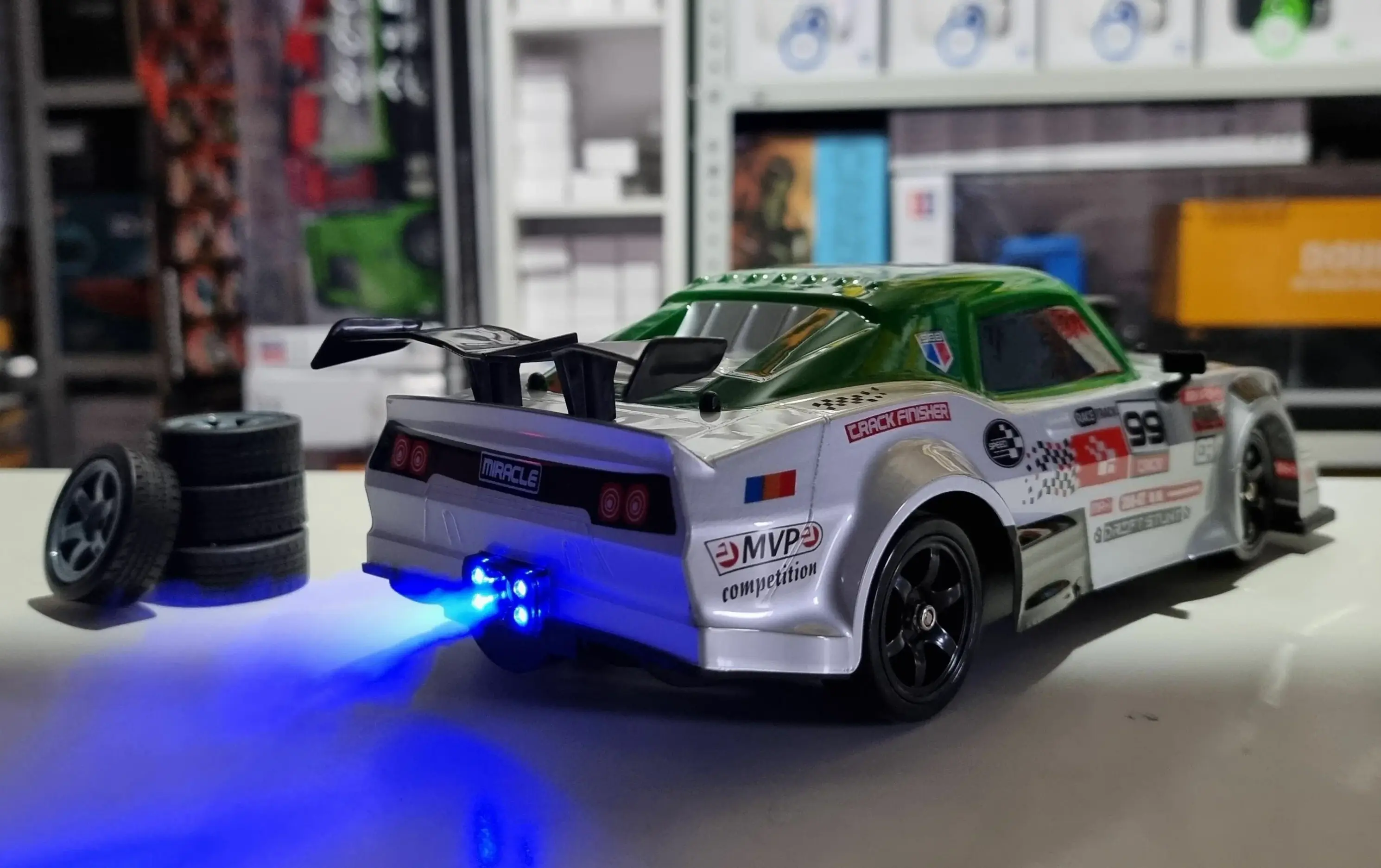 машинка для дрифта, пульт управления, ёмкость для воды, 2 комплекта колёс, ключ, аккумулятор, зарядное стройство |