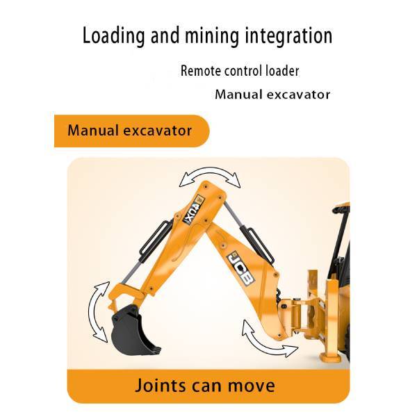 Этот радиоуправляемый экскаватор-погрузчик полностью функционален и все его действия могут быть управляемы с пульта. Он может двигаться вперед, назад, вправо и влево, прекрасно передвигаясь по почти любым поверхностям. Принцип движения этой модели полностью повторяет настоящую строительную технику, создавая удивительное ощущение реализма.