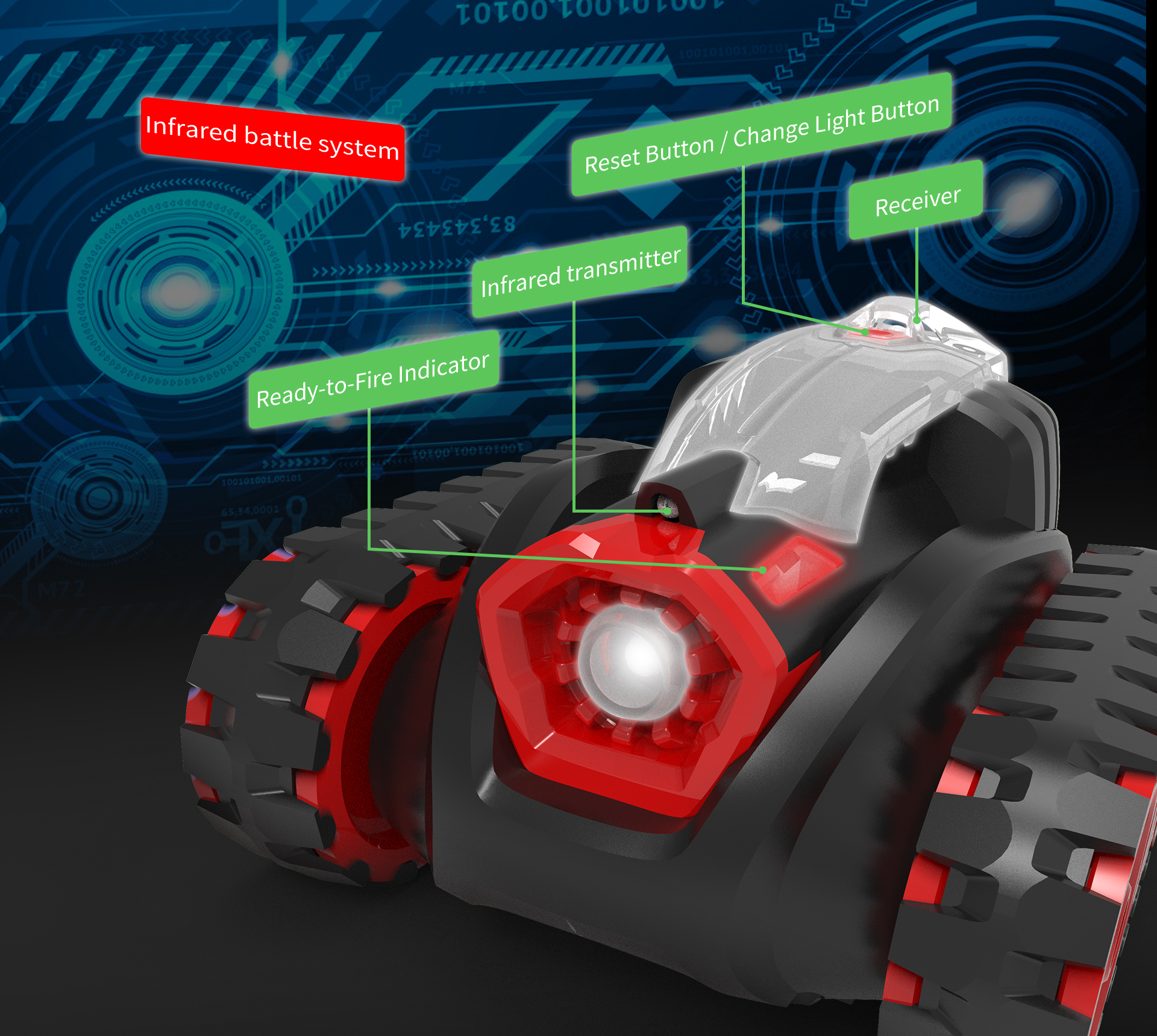Особенности этой игрушки не оставят равнодушными ни детей, ни взрослых. Световые, звуковые и динамические эффекты при стрельбе и попадании создают реалистичную атмосферу боя. В рамках игры необходимо выстрелить в противника и нанести 5 очков урона для достижения победы. Возможно играть как самому, так и в командах до 10 игроков.