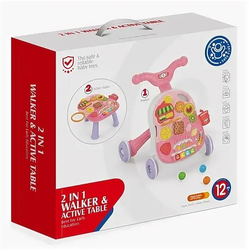 Уникальность модели заключается в двух функциях в одной игрушке. Благодаря clever-конструкции, ее можно использовать как классический толкатель для первых шагов или как полноценный развивающий центр. Чтобы превратить пушер в функциональный стол, достаточно отсоединить переднюю панель и установить три ножки из комплекта. Центральным элементом панели является красочное пианино, воспроизводящее звуки и веселые мелодии, которое наверняка станет любимым развлечением ребенка и доставит ему массу положительных эмоций. Опция 2 в 1 предоставляет больше возможностей для творческого и разнообразного досуга.