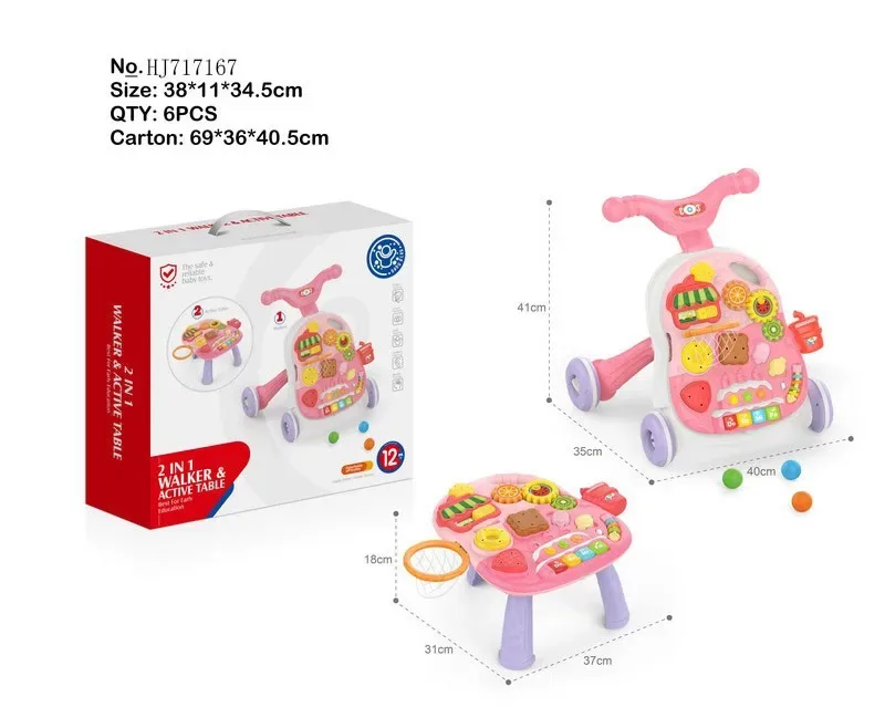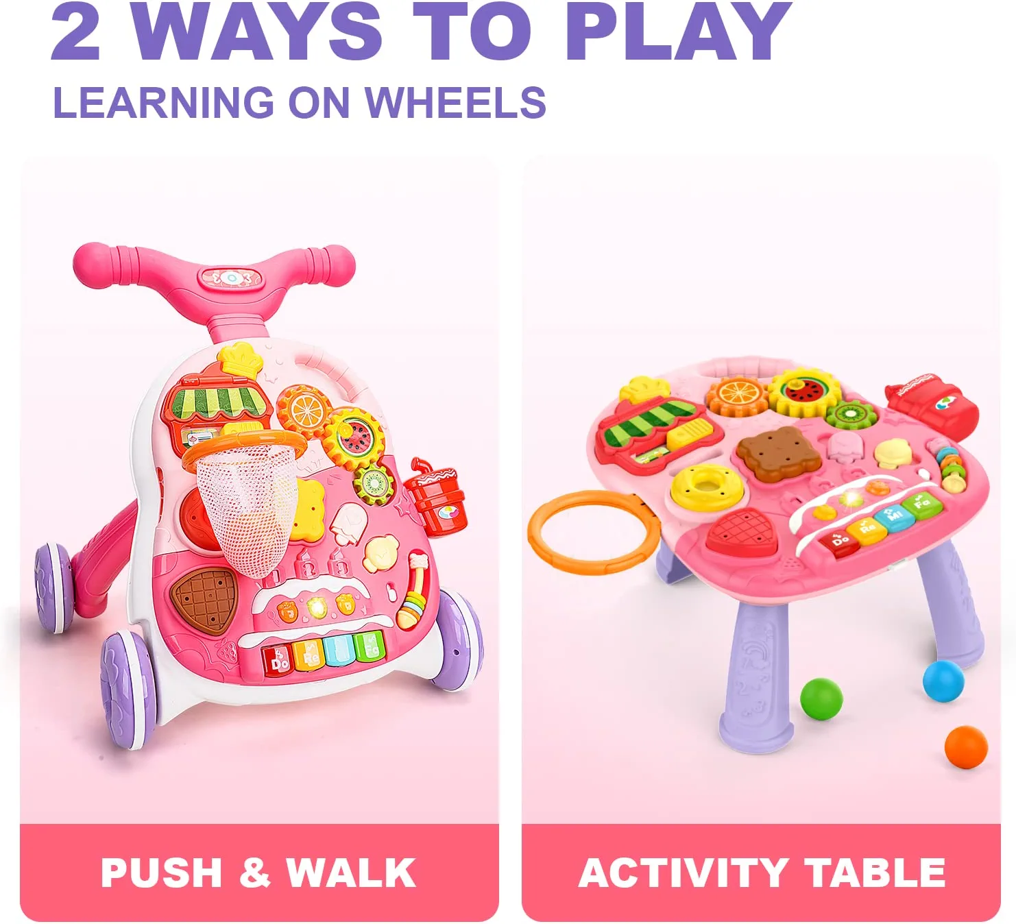 Ходунки и обучающий стол 2в1, со звуками, Huanger HE0814_Rose