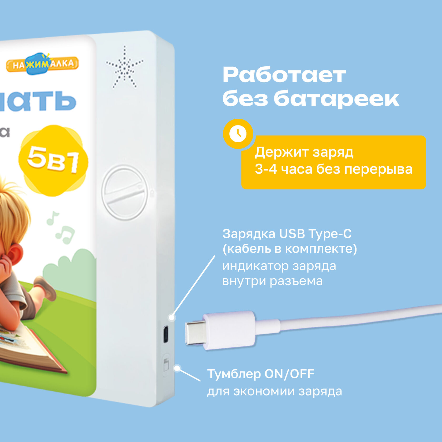 Тумблер вкл./выкл. экономит заряд книги
