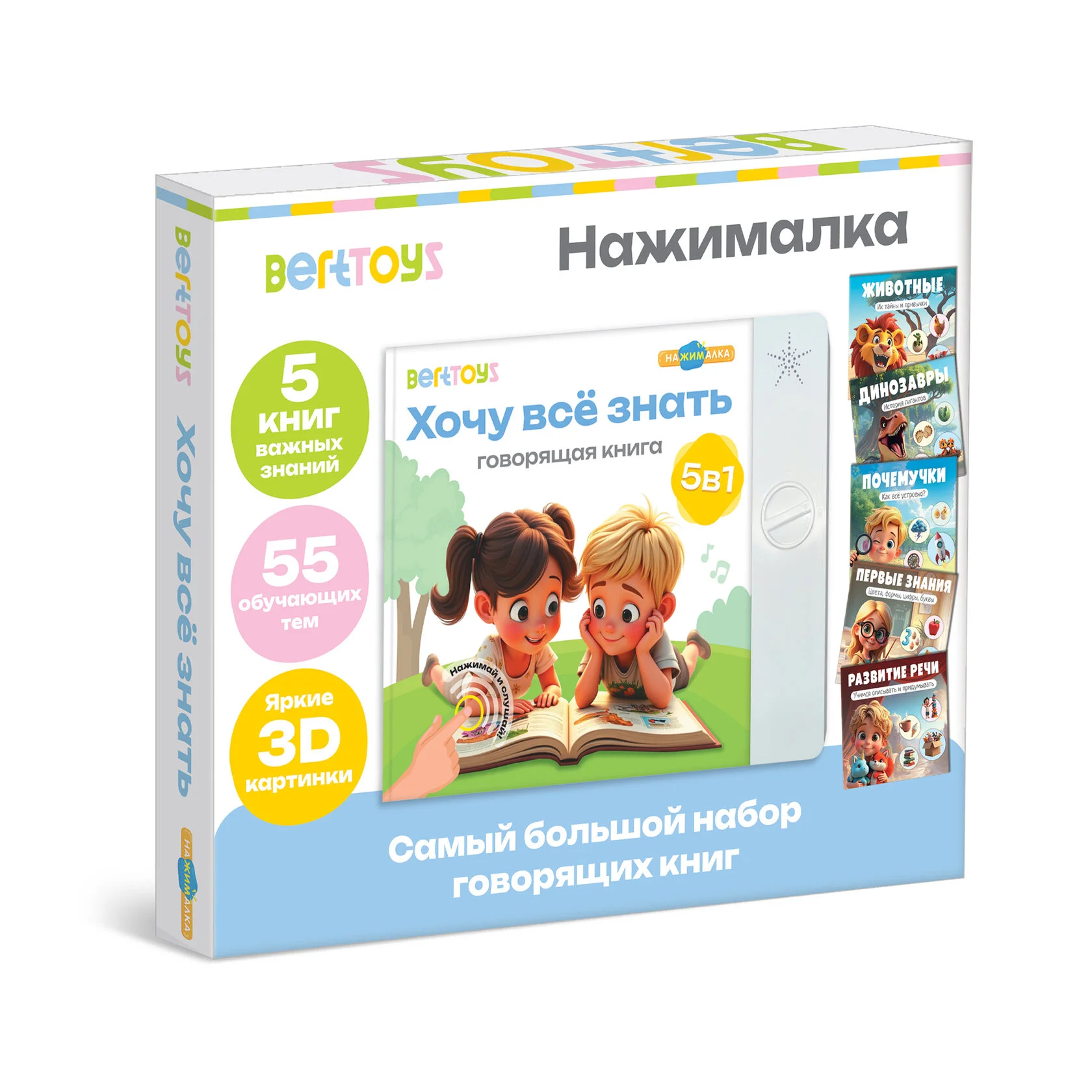 Говорящая интерактивная книжка - Нажималка 5 в 1 Хочу всё знать, BertToys FD155