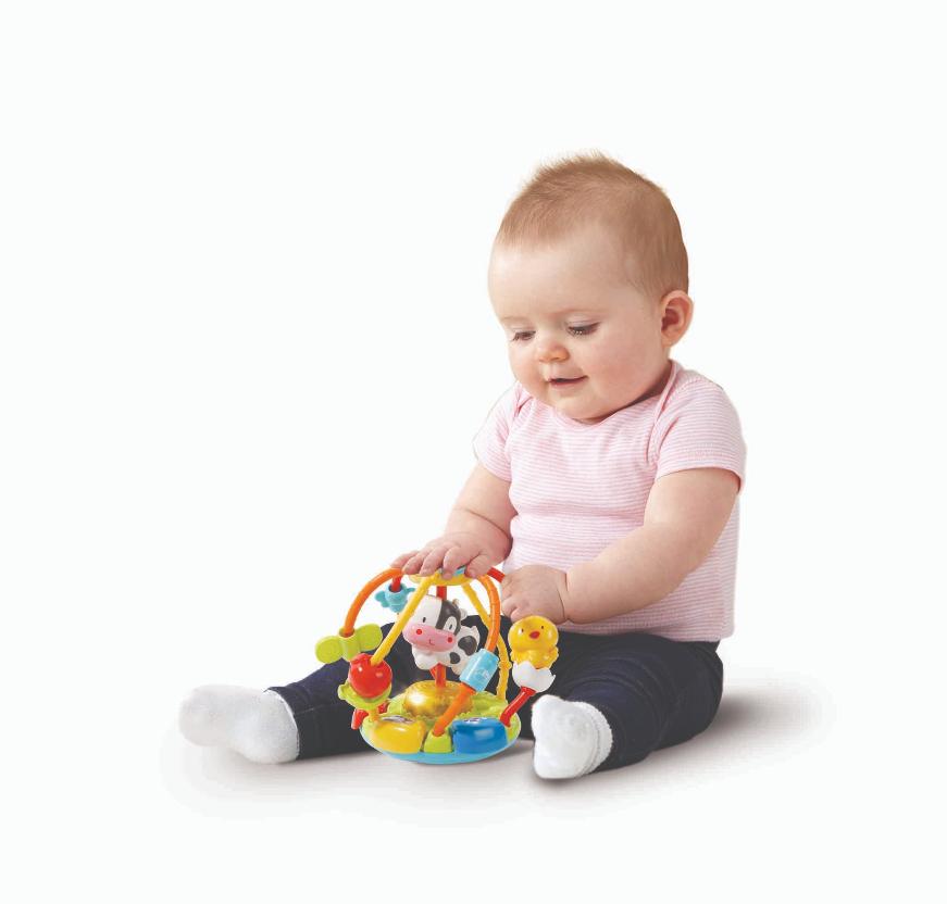 Благодаря эргономичной форме игрушку с лёгкостью могут удержать даже малыши. Яркие элементы в виде милых зверушек привлекают детей и надолго занимают их внимание. Вращая и подкидывая мячик, ребёнок улучшает свои физические качества, развивает зрение и внимание.