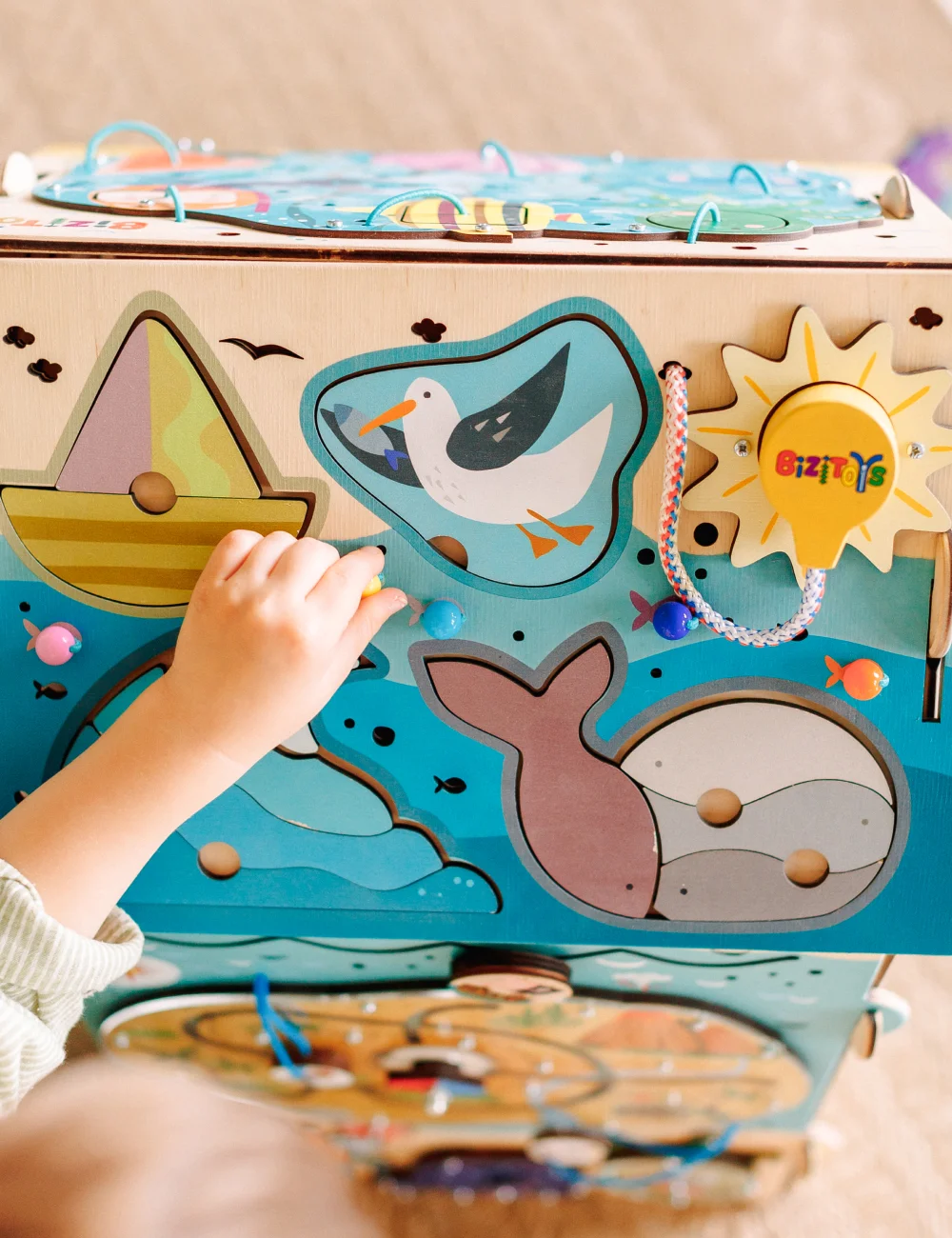 Над картой кораблик. Передвигая его по “волнам”, малыш развивает координацию движений