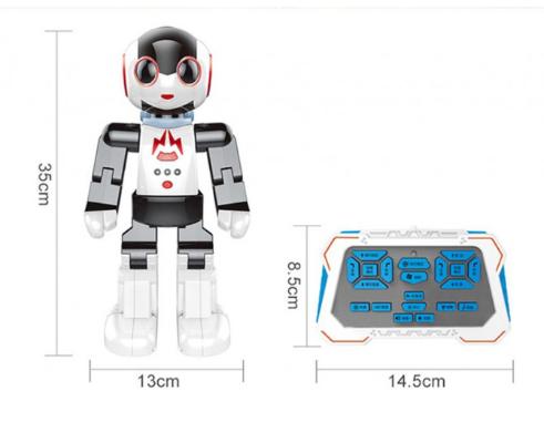 Корпус робота изготовлен из прочного нетоксичного пластика, на голове имеется динамик, а на спине гнездо для зарядки батареи. Для питания робота внутри имеется встроенный аккумулятор 3.7В, 350мАч. Пульт управления имеет 20 кнопок, но управление не вызывает проблем. С роботом легко справляются дети, тем более, что он оснащен демонстрационным режимом и наглядно показывает все, что умеет. Этот робот не просто забавная игрушка, которая нравиться всем. Детям этот робот становится другом, который понимает ребенка, с роботом можно играть и шалить.