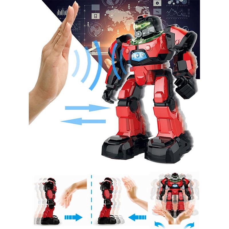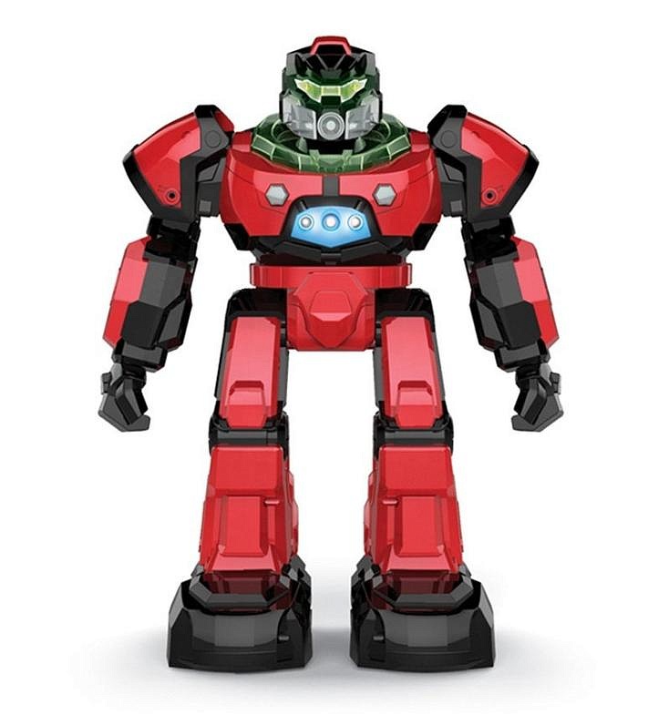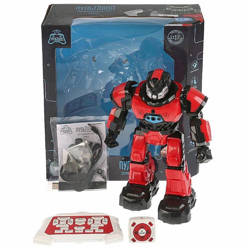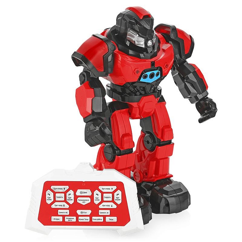 Робот пультовод на дистанционном управлении, желанный подарок для современного мальчика. Его новый друг сможет удивить своими игровыми возможностями не только ребенка, но и взрослых: он может двигаться во всех направлениях, умеет говорить, знает несколько увлекательных историй и интересные факты, а также любит танцевать под музыку. Управлять игрушкой можно как с помощью пультов, один из которых удобно крепится на руку с помощью ремешка. Игрушка работает от встроенного аккумулятора, для обычного пульта необходимы 2 батарейки типа AA (не входят в комплект), а для наручного