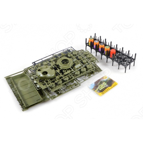 Танк собирается из небольших по размеру деталей, которые лучше всего собирать по схеме (представлена в инструкции). Соединяются детали при помощи клея. После сборки танк можно раскрасить.