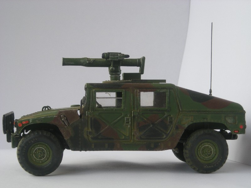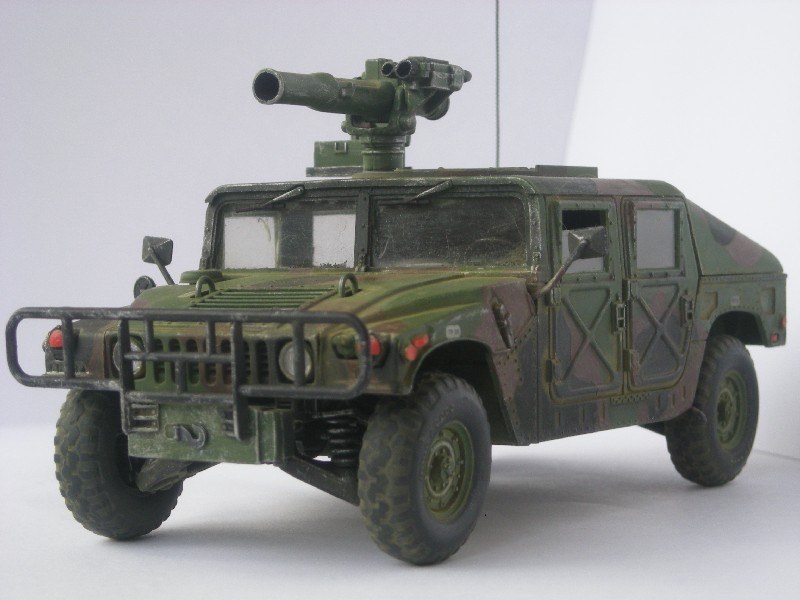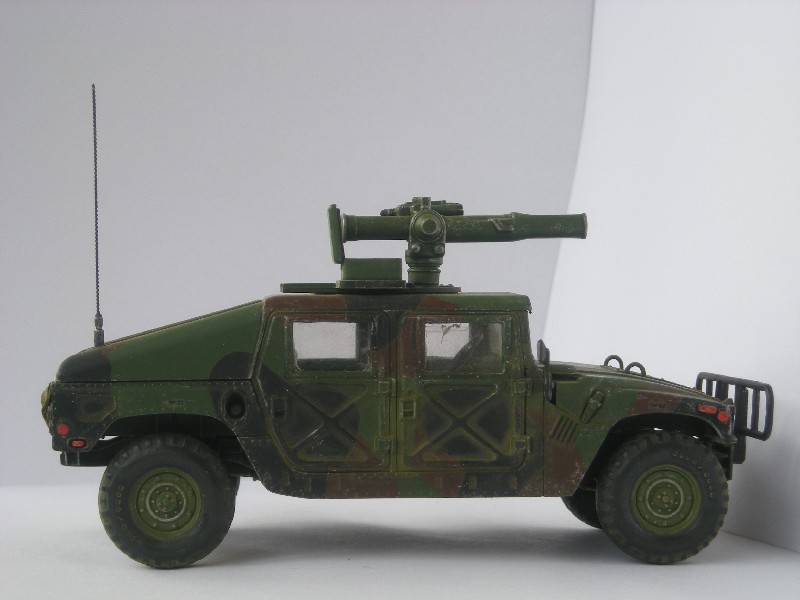 Историческая справка: M1036 HMMV С противотанковым комплексом ТОУ. Этот высокопроходимый вездеход был специально разработан для нужд подразделений армии США, машина оснащена синхронизированной коробкой передач. "Хаммер" прост в управлении, лёгок и мобилен, незаменим в труднопроходимых лесных районах и песках. Данные машины с успехом зарекомендовали себя в ходе войны в Персидском заливе и на Балканах.