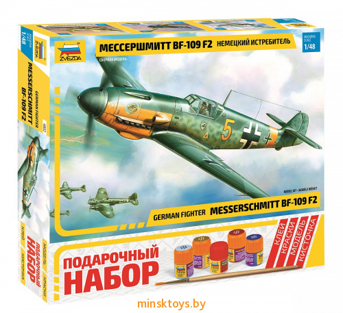 Сборная модель самолёта - Немецкий истребитель «Мессершмитт» BF-109 F2, подарочный набор, Звезда 4802ПН