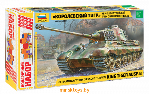 Тяжелый немецкий танк T-VIB «Королевский Тигр» с башней Хеншель, подарочный набор, Звезда 3601ПН