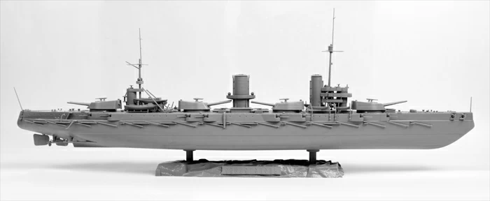 Историческая справка: Линкор «Севастополь» - первый «дредноут» российского флота, - был заложен в июне 1909 года на верфях Балтийского завода в Санкт-Петербурге. 17 ноября 1914 году корабль был введен в строй, а в 1915 вошел в состав 1-й бригады линейных кораблей Балтийского флота, которая в ходе Первой мировой войны обеспечивала превосходство русского флота над германским на Балтийском море. Артиллерию главного калибра «Севастополя» составляли двенадцать 305-мм пушек, размещавшиеся в четырех трехорудийных башенных установках.
