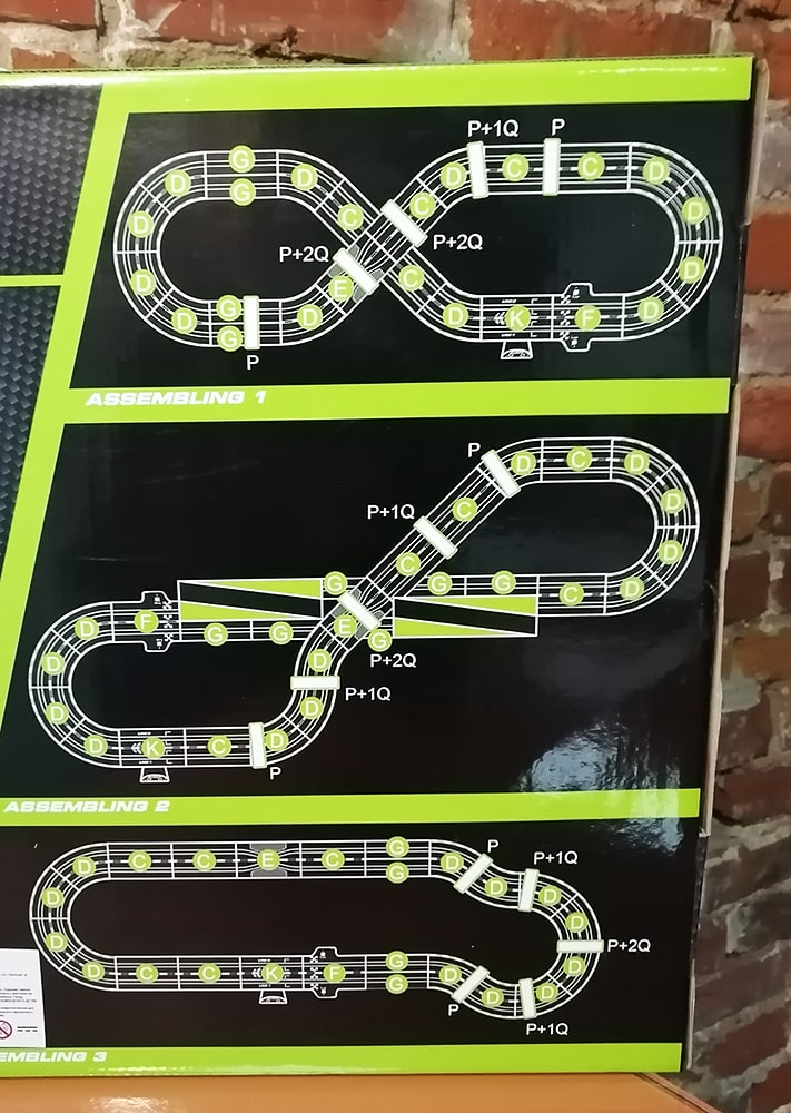 Трек будет отличным вариантом проведения досуга с ребёнком. Из деталей можно формировать 3 разных вида трека (длинна трека 620 см.) Так же в наборе есть 2 машинки на радиоуправлении, и 2 пульта к ним.