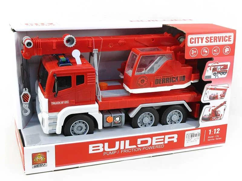 Пожарная машина - Автокран, инерционный, игрушка, 1:12 WENYI, WY812C