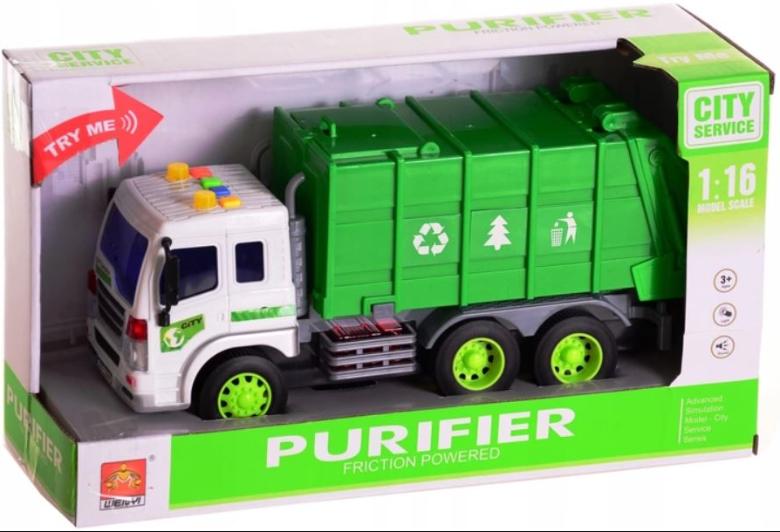 Инерционная машинка - Зелёный мусоровоз, (свет, звук), 1:16. WenYi WY320A