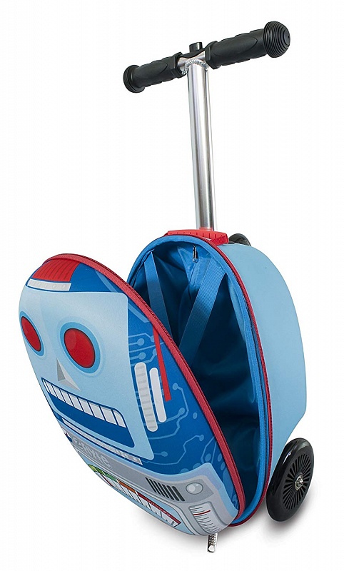 Самокат-чемодан в виде робота от британского производителя Zinc - стильный и качественный самокат, который приведет в восторг самого юного путешественника.