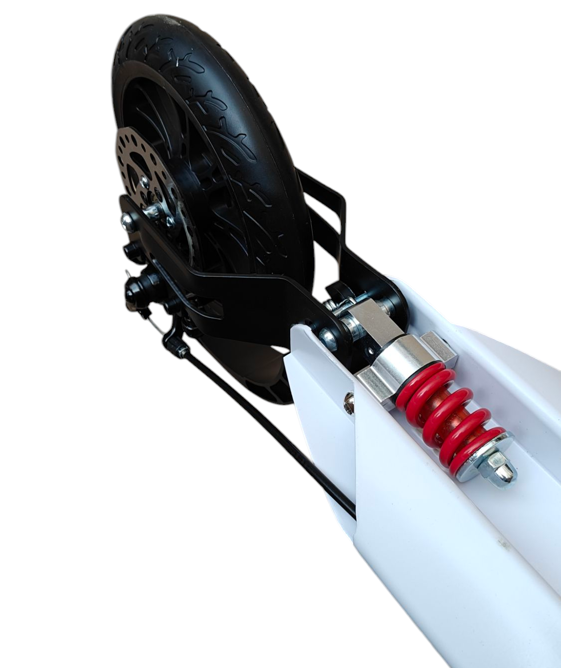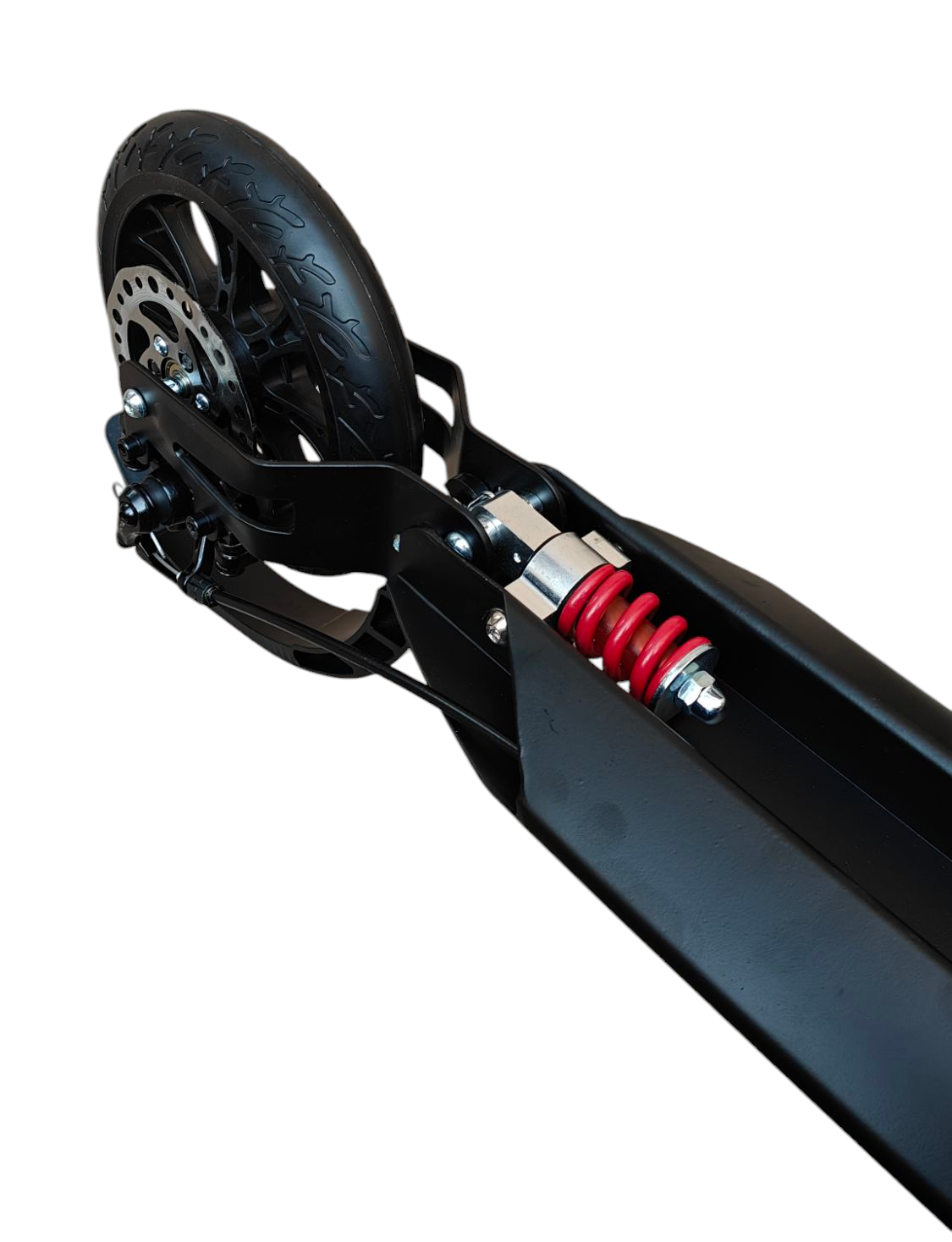 На самокате установлены два амортизатора, передний и задний, обеспечивающие плавную и комфортную езду.