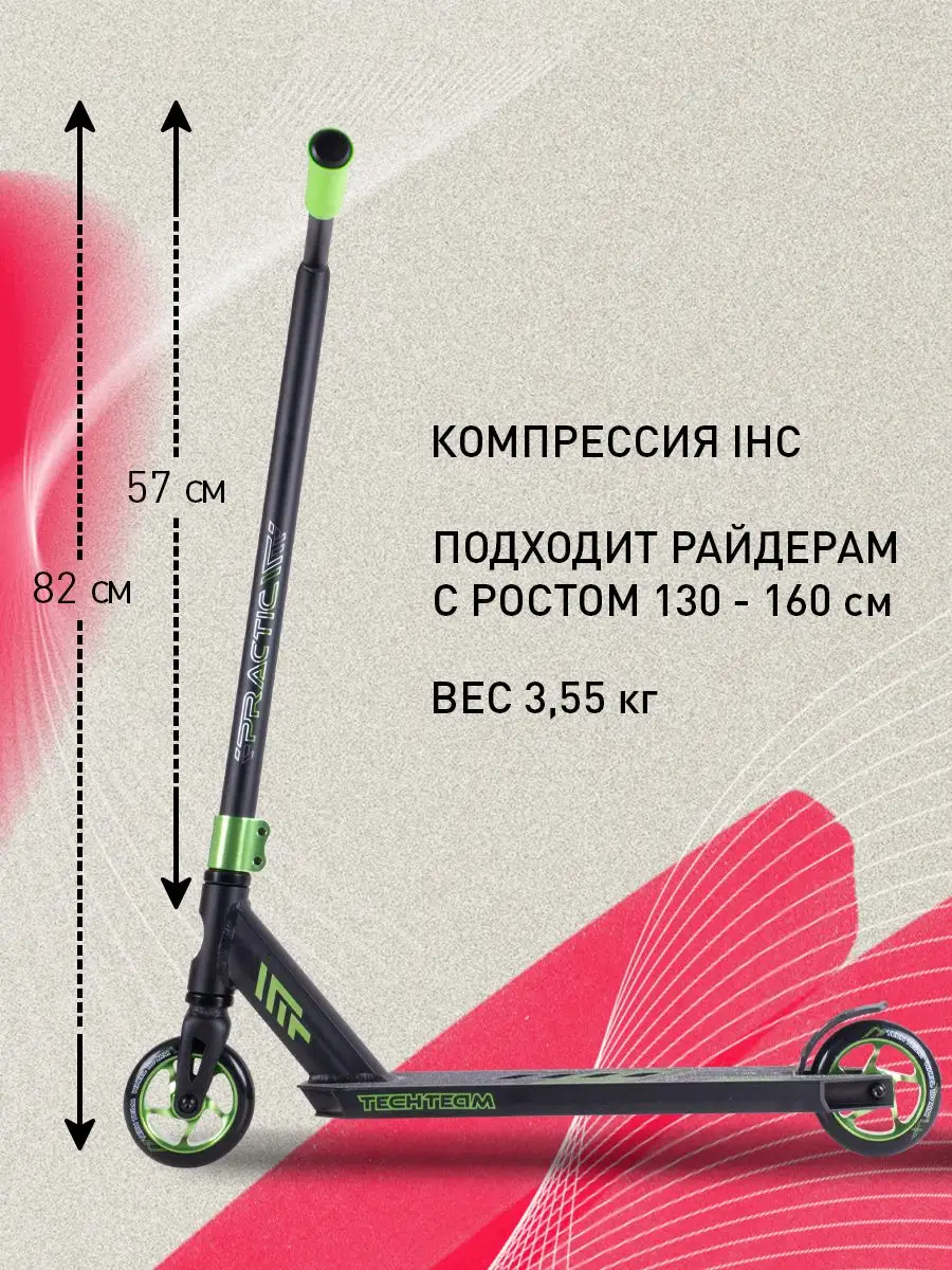 Самокат трюковой Practic черно-зеленый,Tech Team 373632