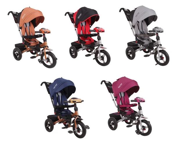 - большие надувные колёса (переднее 12 дюймов, задние 10 дюймов) позволяют вашему ребенку чувствовать себя максимально комфортно на любых неровностях дорожного покрытия.